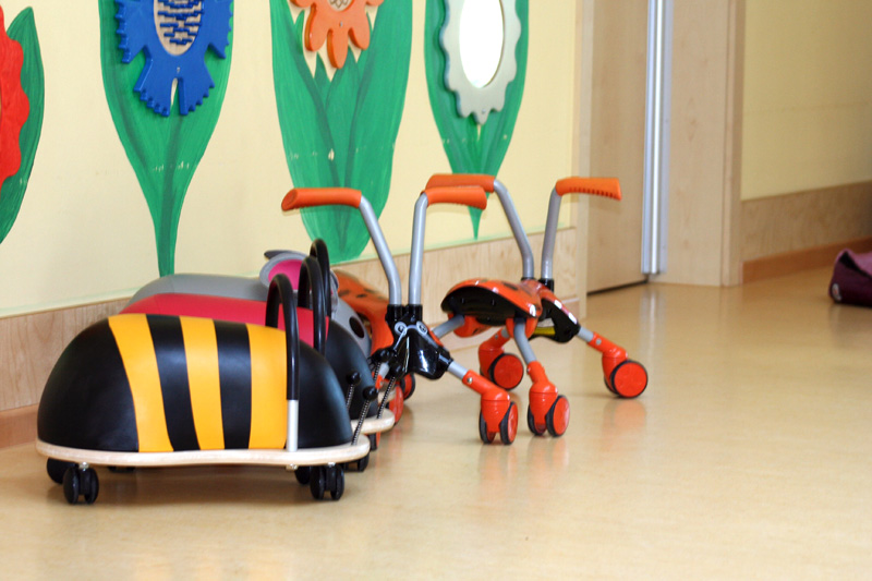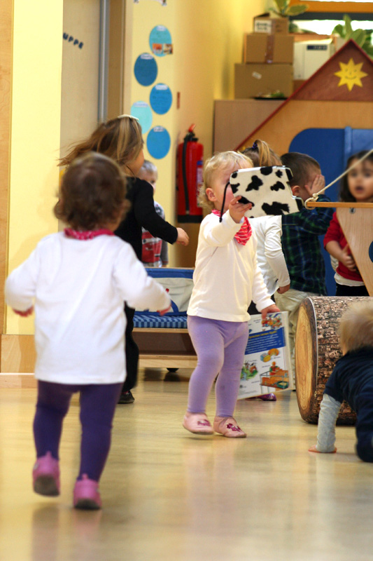 Hier haben wir viel Platz zum Bewegen: rennen, hüpfen, krabbeln, Bobby-Car fahren . . .